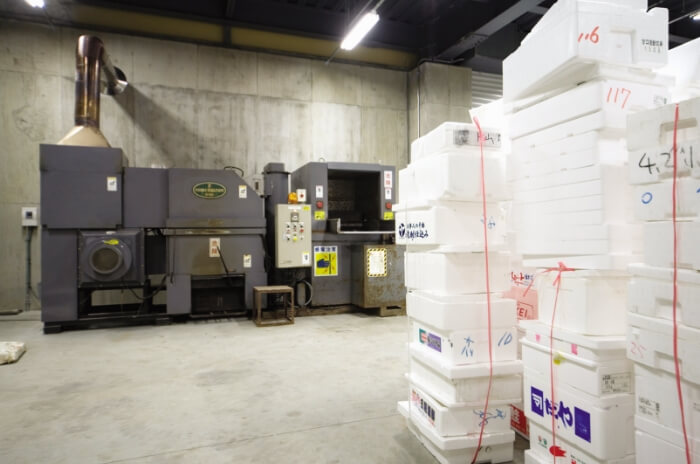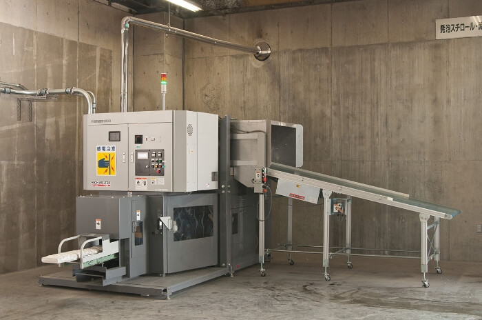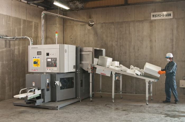 廃棄物として回収された発泡スチロールを毎時100kgというスピードで破砕、減容処理し、約300t/年の処理能力があります。