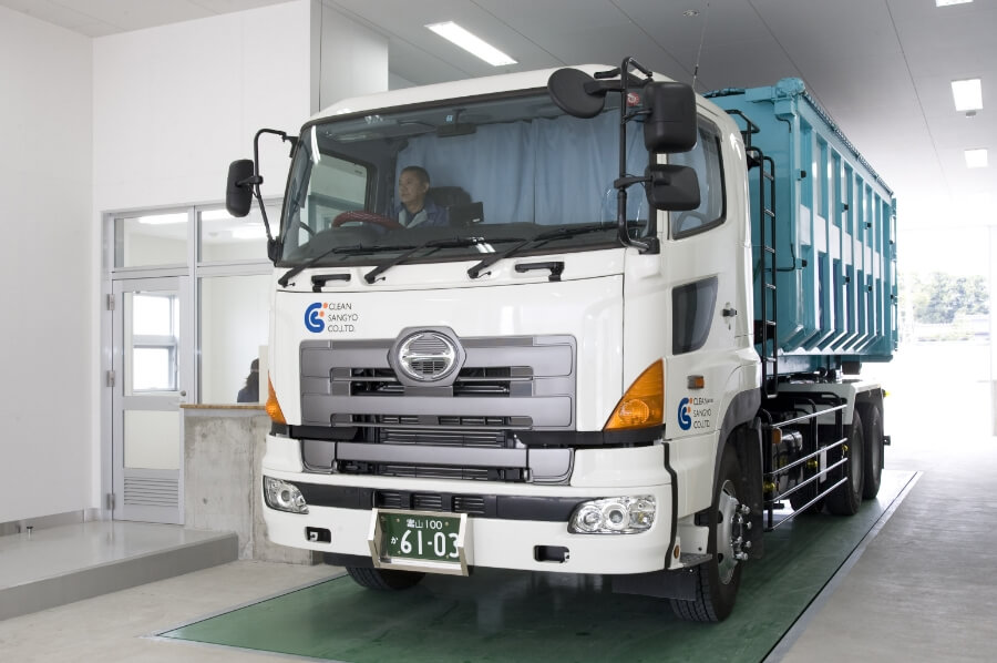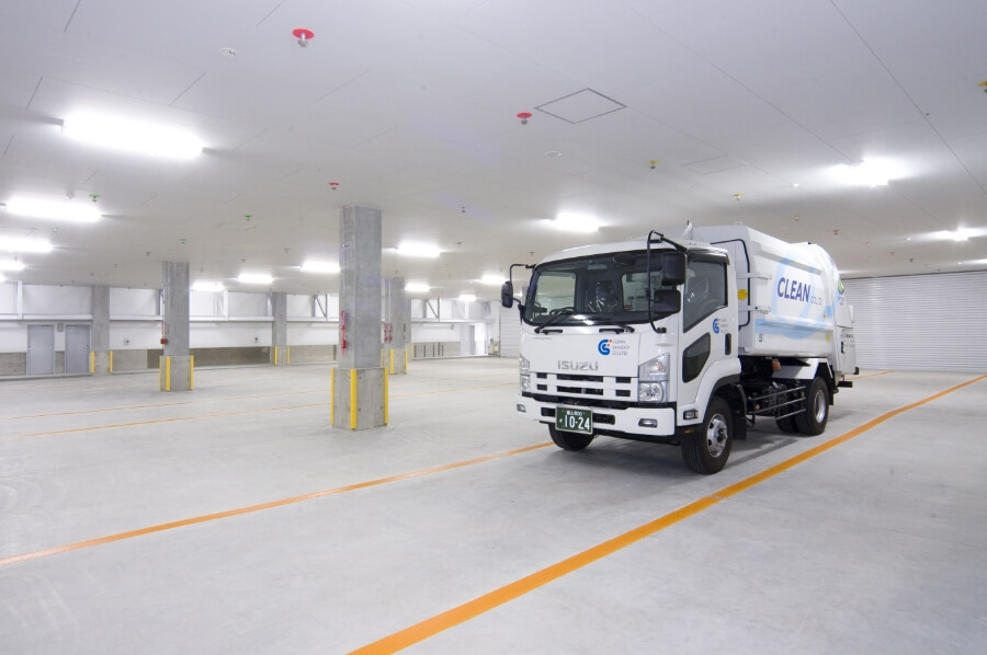 収集運搬を終わった収集車は清潔に洗浄された後、周辺環境に配慮された屋内駐車場に収納されます。