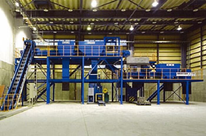 トロンメルで選別された10〜50mmの小容積の物を風力と振動の作用により、高効率に可燃物と不燃物に分類され、可燃物はサーマルリサイクルします。